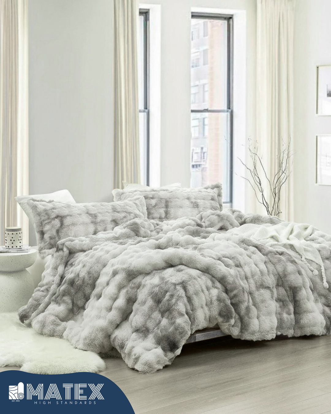 King Size CatLook Chinchilla Faux Fur Sherpa Comforter set (3 pcs)