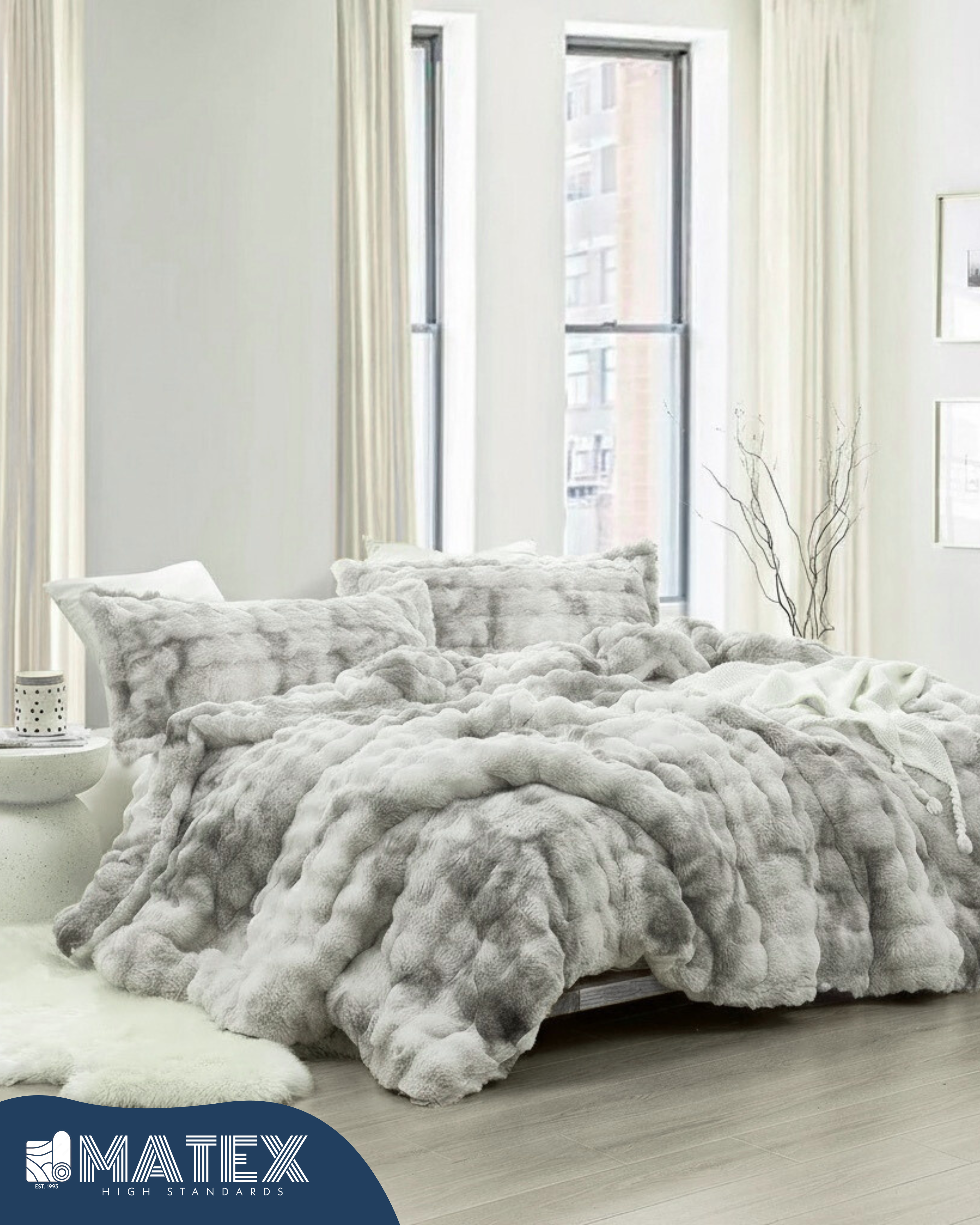 (Restocked) King Size Light Grey Rabbit Faux Fur Sherpa Comforter (3 pcs)