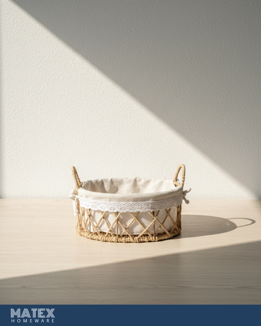 Lydia Woven Circle Basket with Lace Trim & Linen Liner