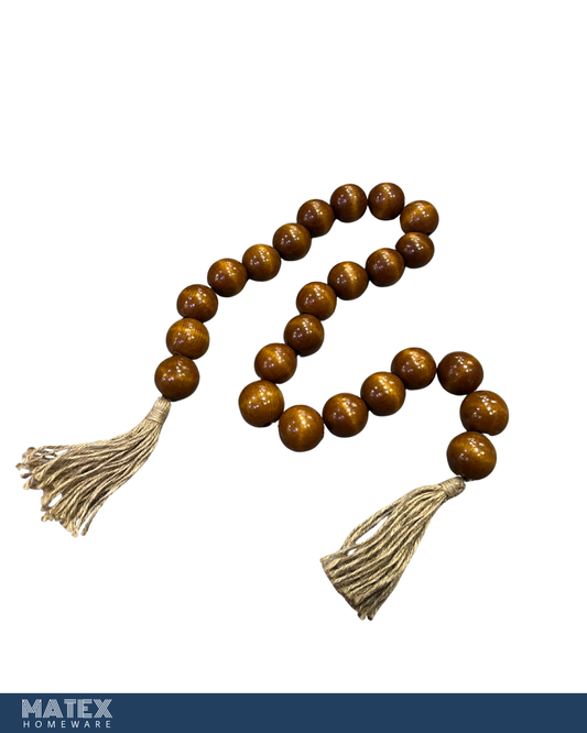 Boho Pattern Wood Oak Bead Decor with Tassels