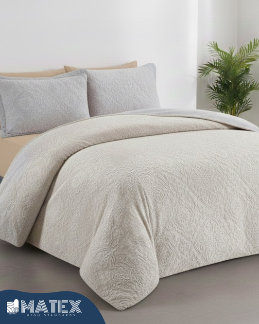 King Size Greige Embossed Woollen Comforter (3 pcs)