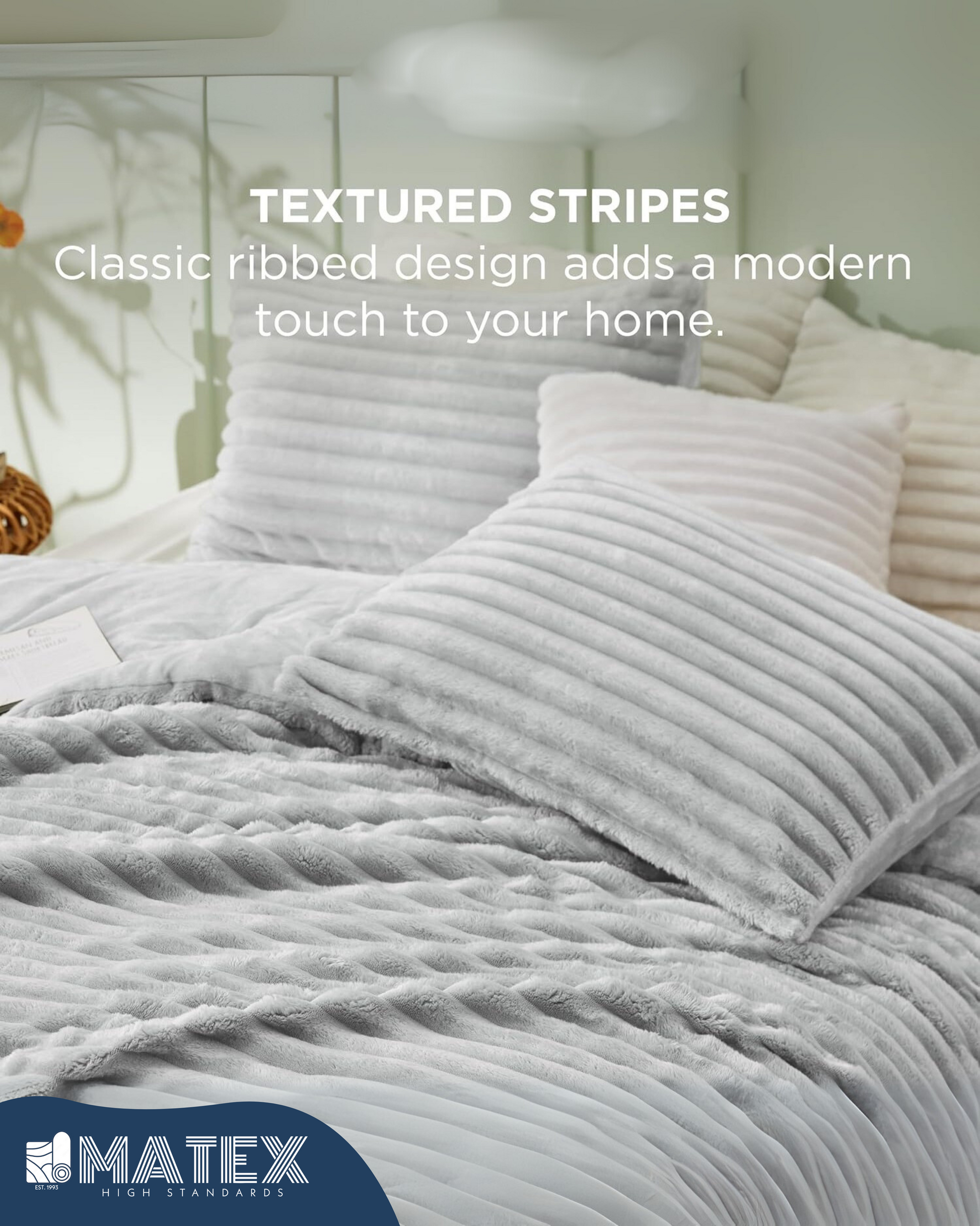 (Restocked) King Size Light Grey PlushWave Comforter Set (3 pcs)