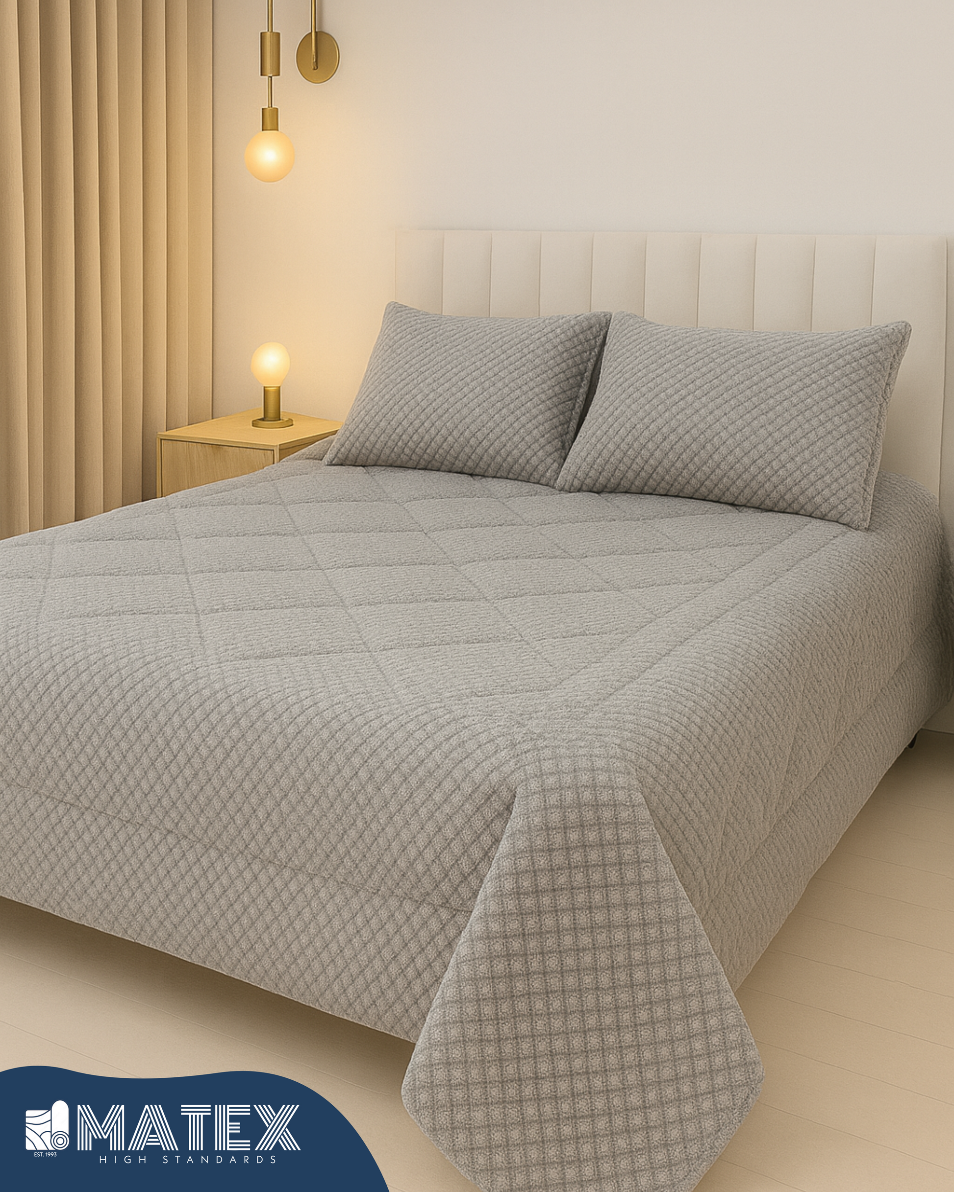 King Size Light Grey Rabbit Faux Fur Sherpa Comforter (3 pcs)